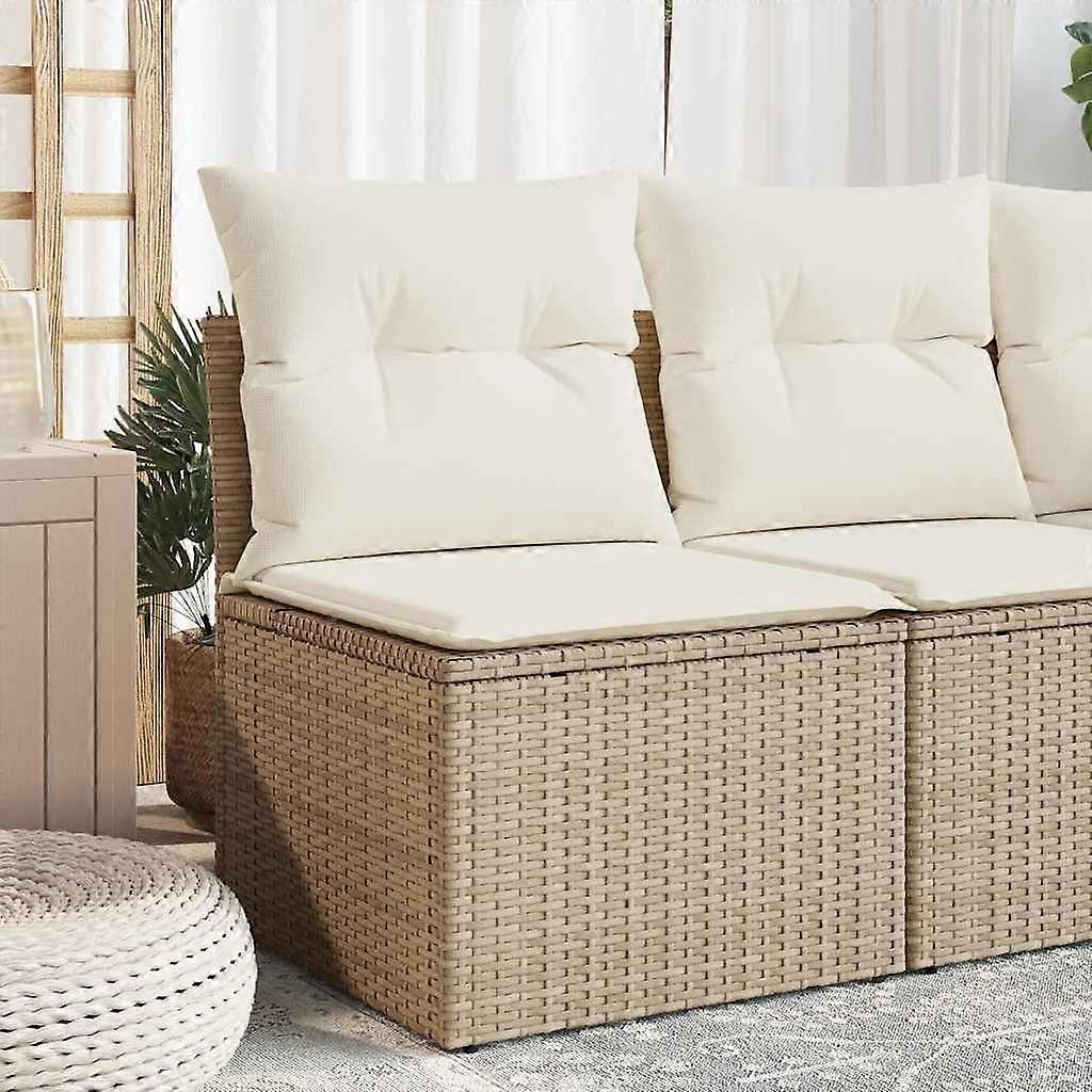 Gartensessel ohne Armlehnen mit Kissen Beige Poly Rattan