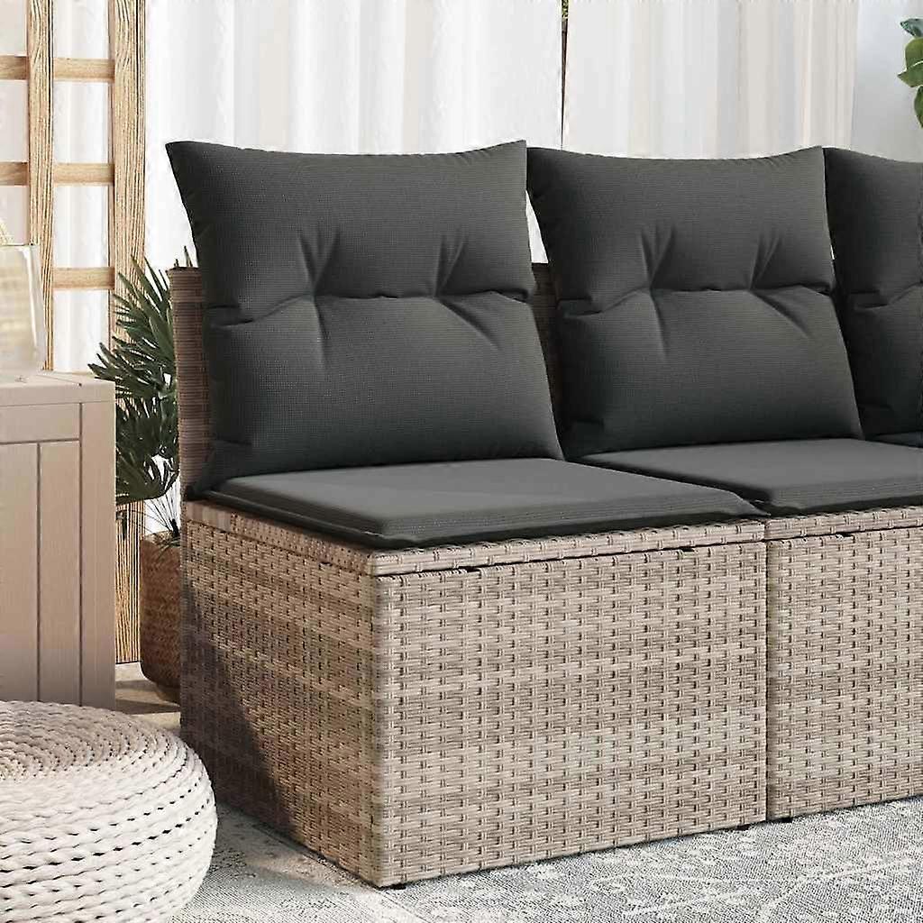 Gartensessel ohne Armlehnen mit Kissen Hellgrau Poly Rattan