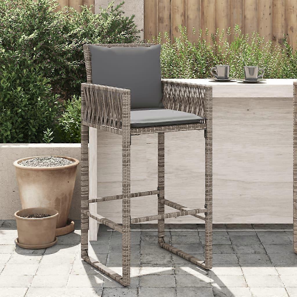 Garten-Barhocker mit Kissen 2 Stk. Grau Poly Rattan
