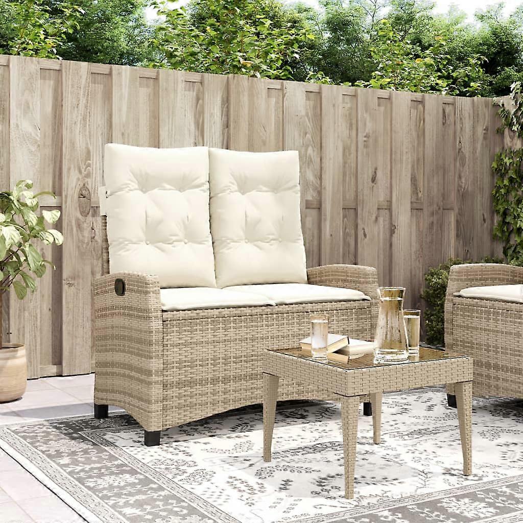 Gartenbank Verstellbar mit Kissen Beige Poly Rattan
