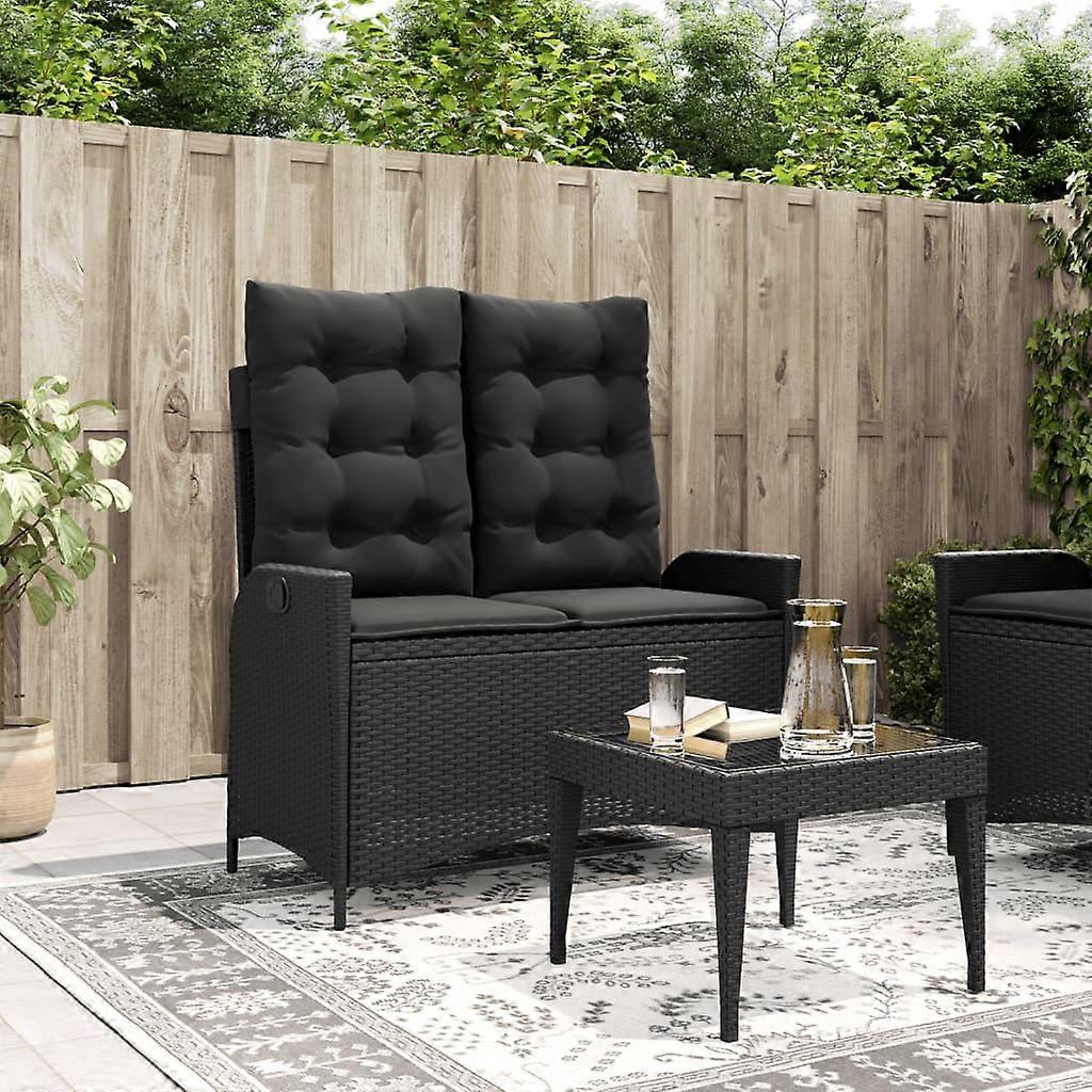 Gartenbank Verstellbar mit Kissen Schwarz Poly Rattan