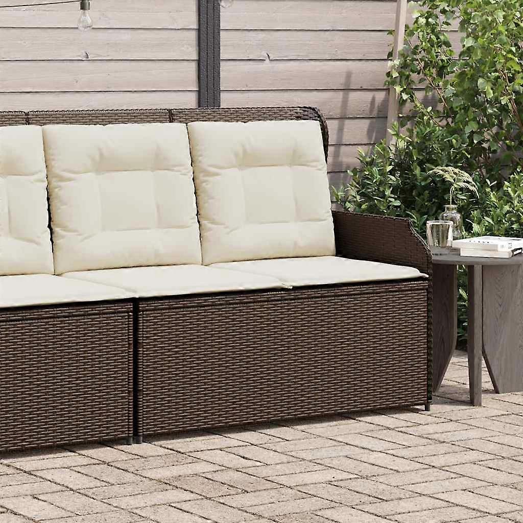 Gartenbank Verstellbar mit Kissen Braun Poly Rattan