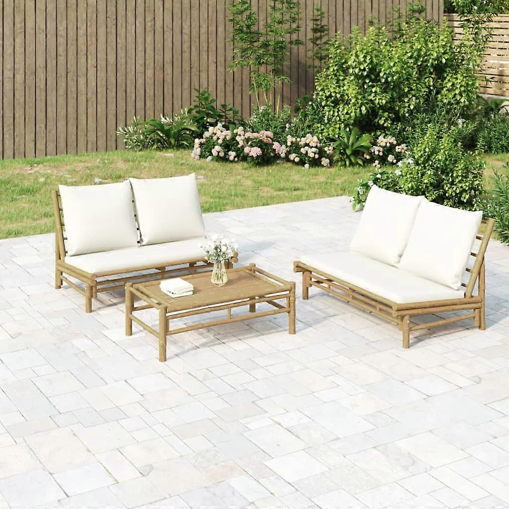 Gartenbank mit Cremeweißen Kissen Bambus