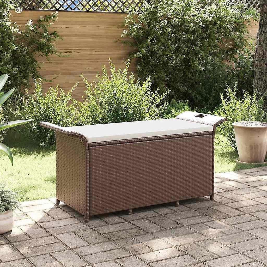 Gartenbank mit Kissen Braun 116x46x57 cm Poly Rattan