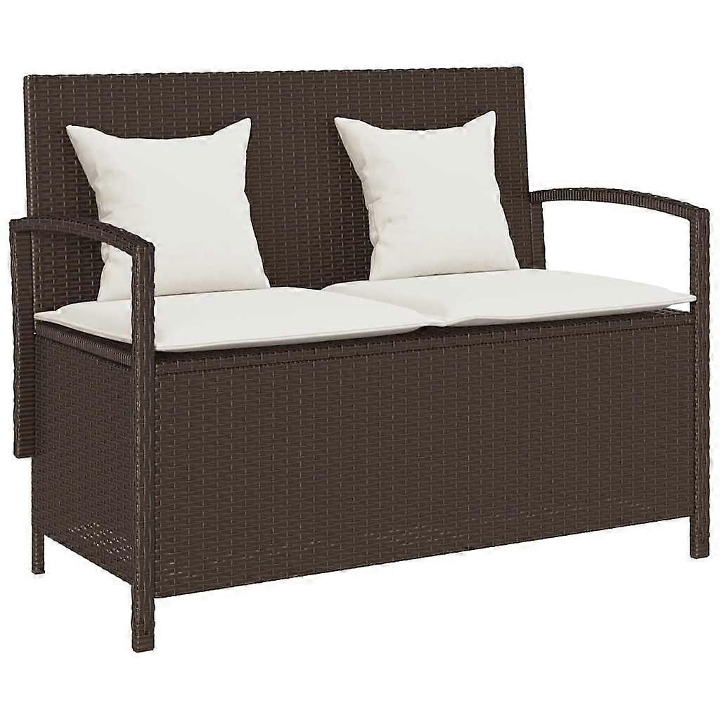 Gartenbank mit Stauraum und Kissen Braun Poly Rattan