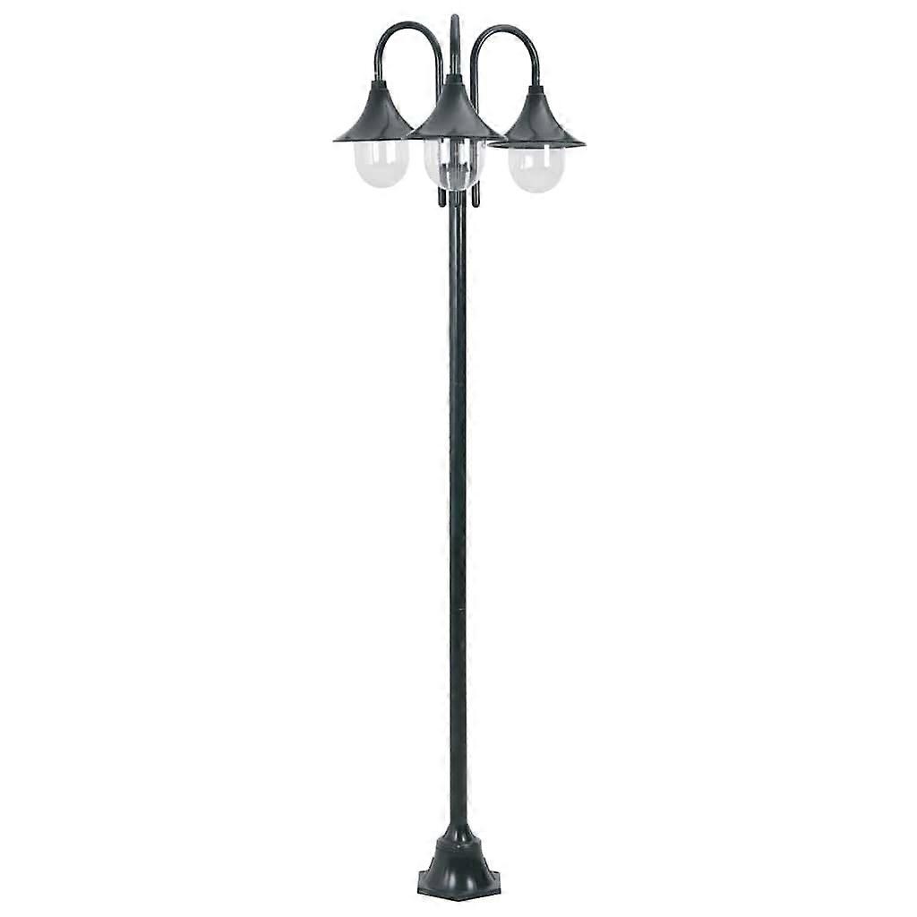 Garten-Pollerleuchte E27 220 cm Aluminium 3-Laterne Dunkelgrün