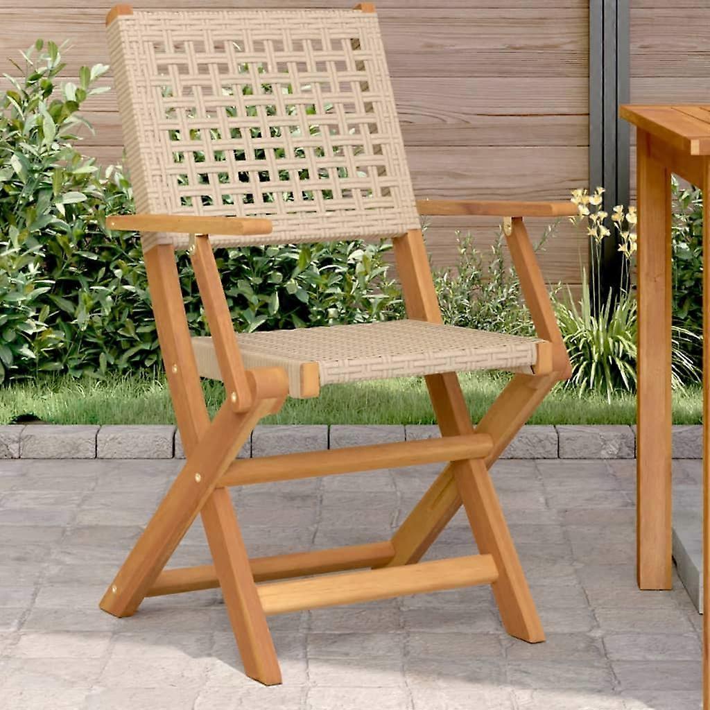 Gartenstühle 2 Stk. Beige Massivholz Akazie und Poly Rattan