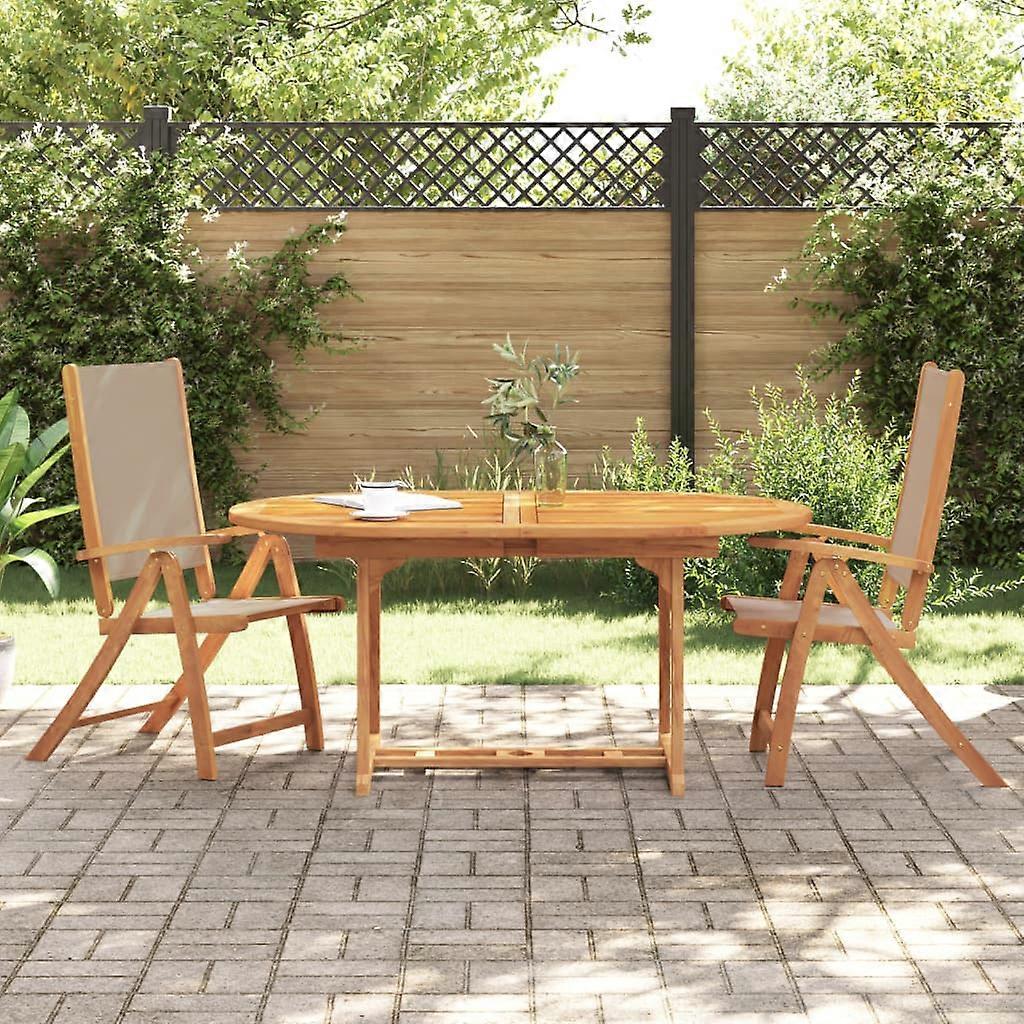 Farbe: TaupeMaterial: Massives Akazienholz mit Ölfinish, Textilene-GewebeAbmessungen: 57 x 72 x 109 cm (B x T x H)Sitzhöhe vom Boden: 45 cmArmlehnenhöhe vom Boden: 66 cmMaximale Tragfähigkeit (pro Sitz ): 110 kgZusammenbau erforderlich: JaKissen inbegriffen: Nein Lieferung umfasst:2 x Klappbarer Gartenstuhl