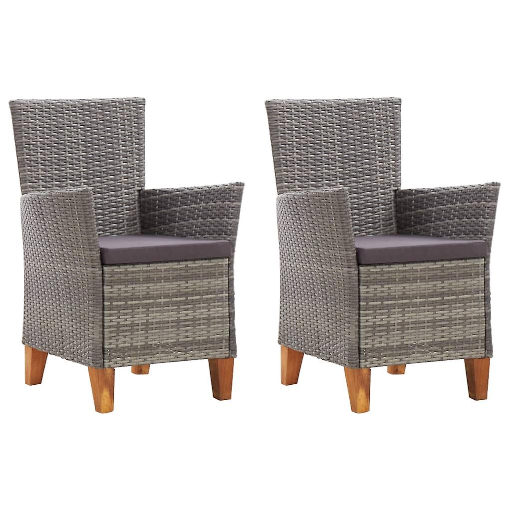 Gartenstühle 2 Stk. mit Auflagen Poly Rattan Grau