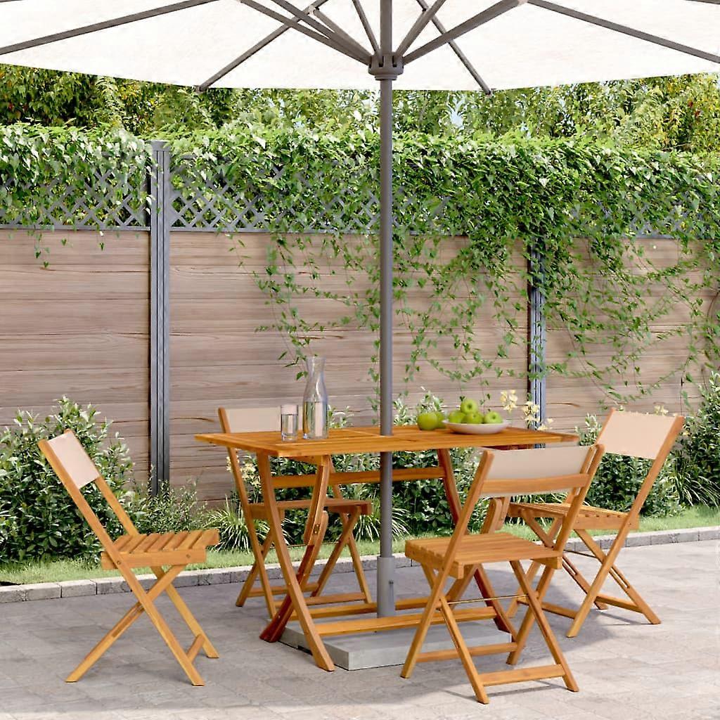 Gartenstühle 4 Stk. Klappbar Beige Stoff und Massivholz