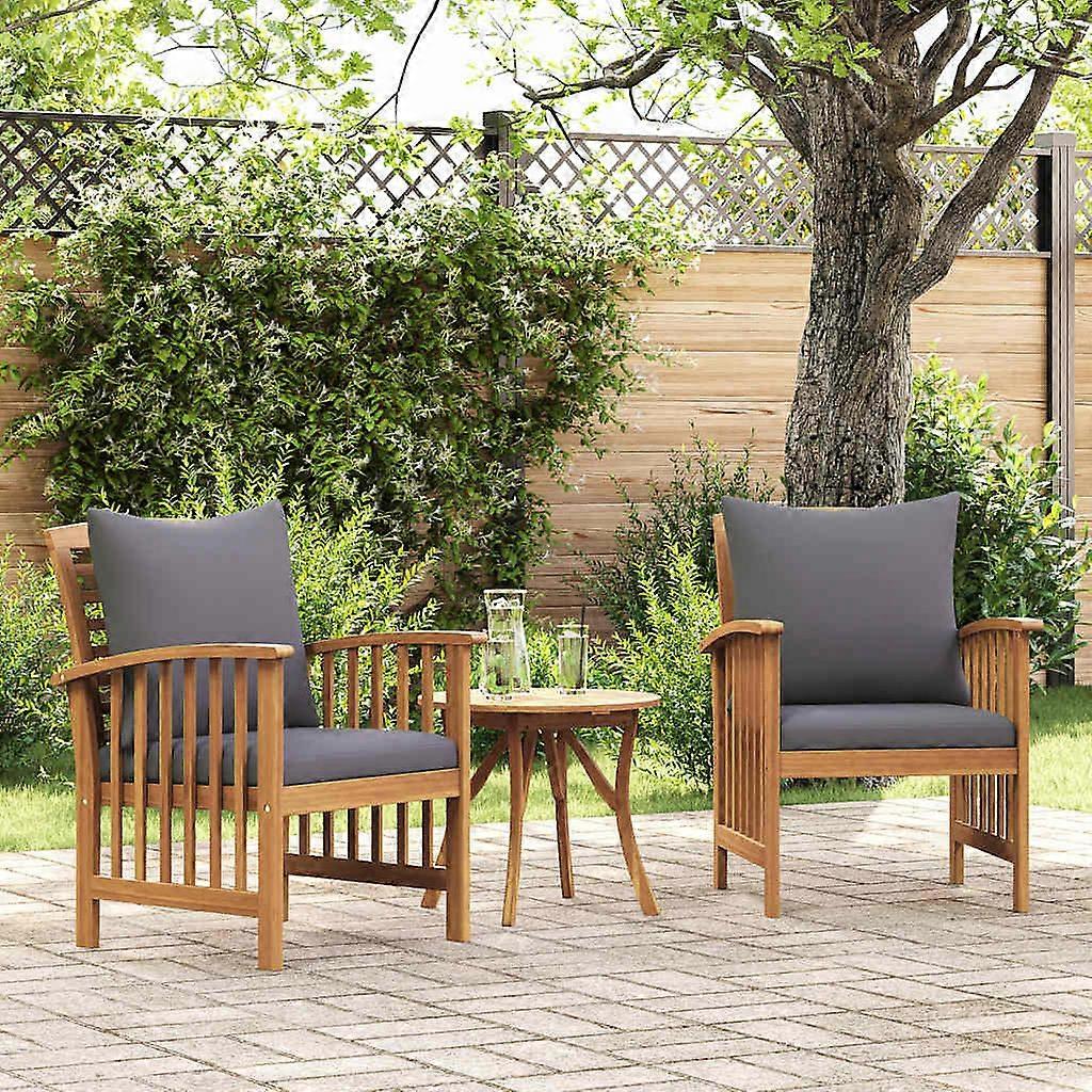 Polsterfarbe: DunkelgrauMaterial: Akazien-Massivholz, mit Öl behandeltKissenmaterial: Stoff (100% Polyester)Abmessungen: 59 x 67 x 83 cm (B x T x H)Sitzfläche: 50 x 48,5 cm (B x T)Sitzhöhe vom Boden: 34 cmSitzkissen-Dicke: 6 cmRückenkissen: 15 cmMit LattenrostZusammenbau erforderlich: JaLieferung enthält:2 x Gartenstuhl2 x Sitzpolster2 x Rückenkissen
