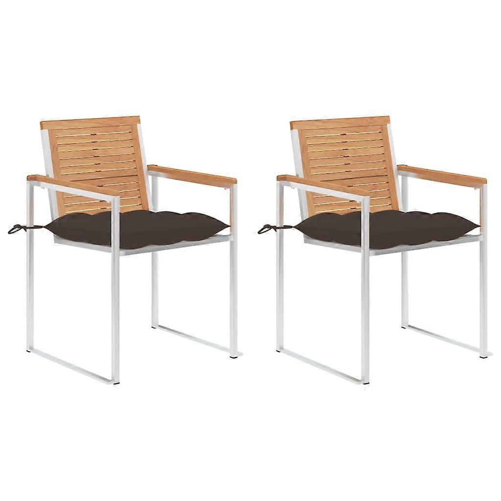 Gartenstühle mit Kissen 2 Stk. Massivholz Teak und Stahl