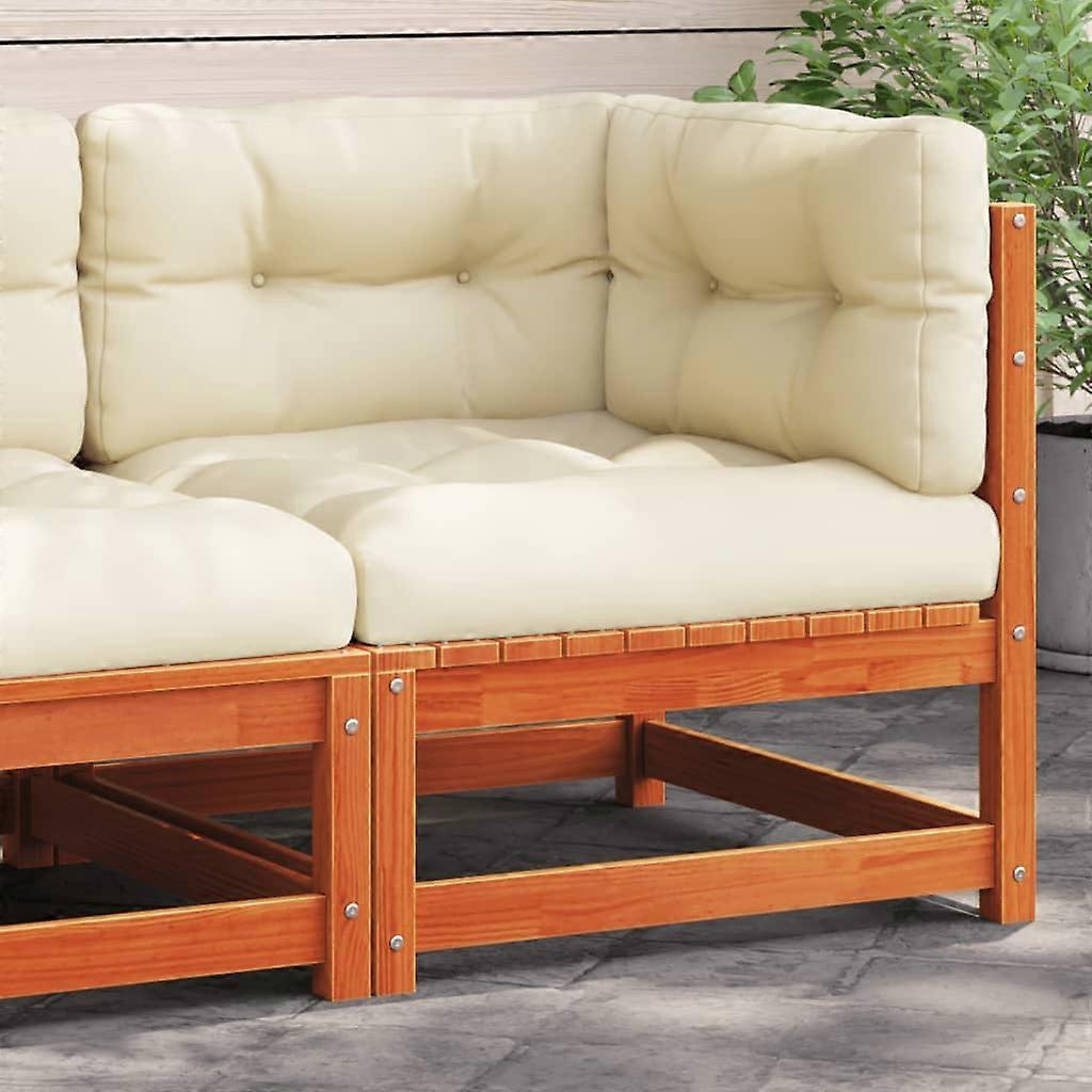 Garten-Ecksofa mit Kissen Wachsbraun Massivholz Kiefer