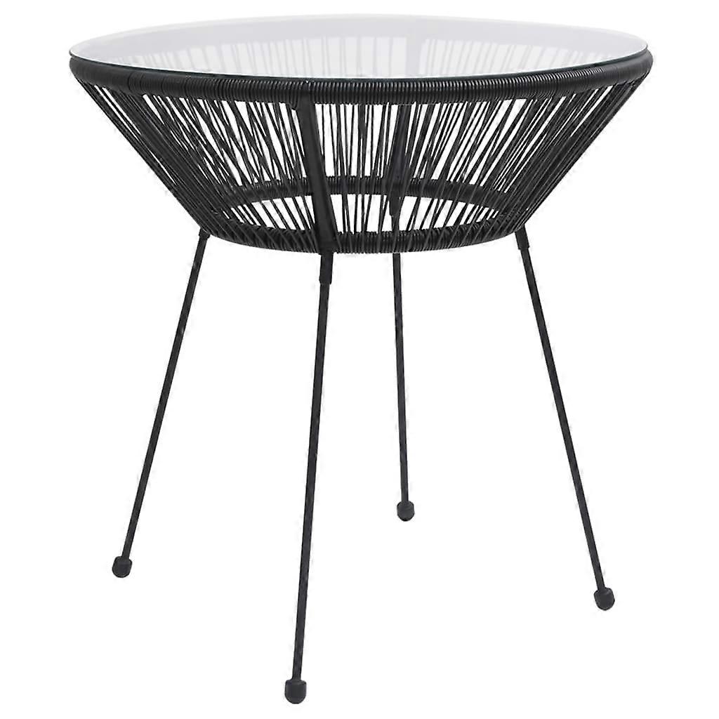 Garten-Esstisch Schwarz Ø70x74 cm Rattan und Glas