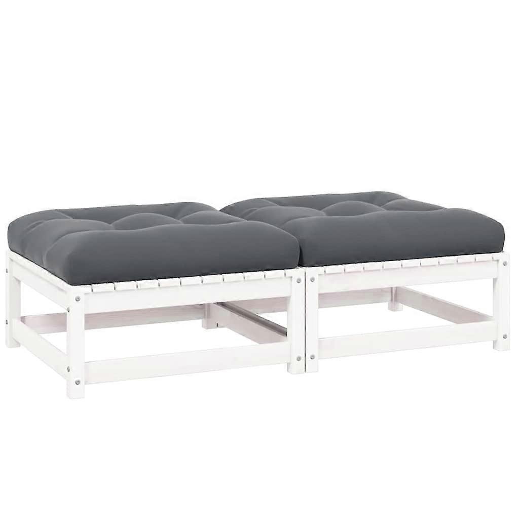 Garten-Fußhocker mit Kissen 2 Stk. Weiß Massivholz Kiefer