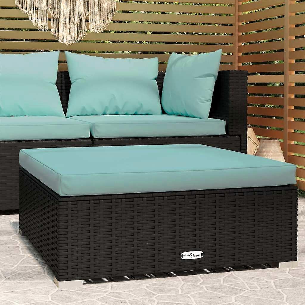 Garten-Fußhocker mit Kissen Schwarz 70x70x30 cm Poly Rattan