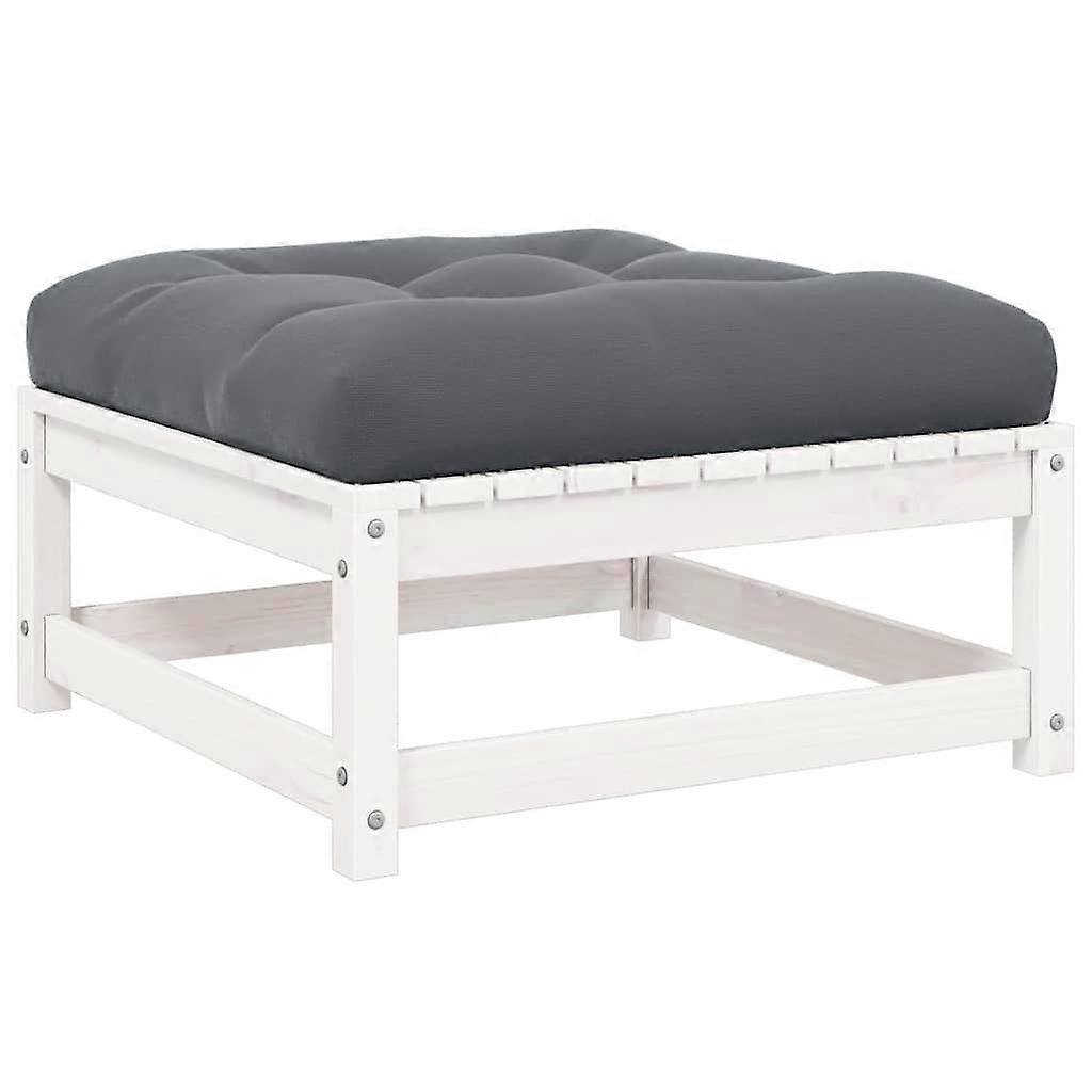 Garten-Fußhocker mit Kissen Weiß Kiefer Massivholz