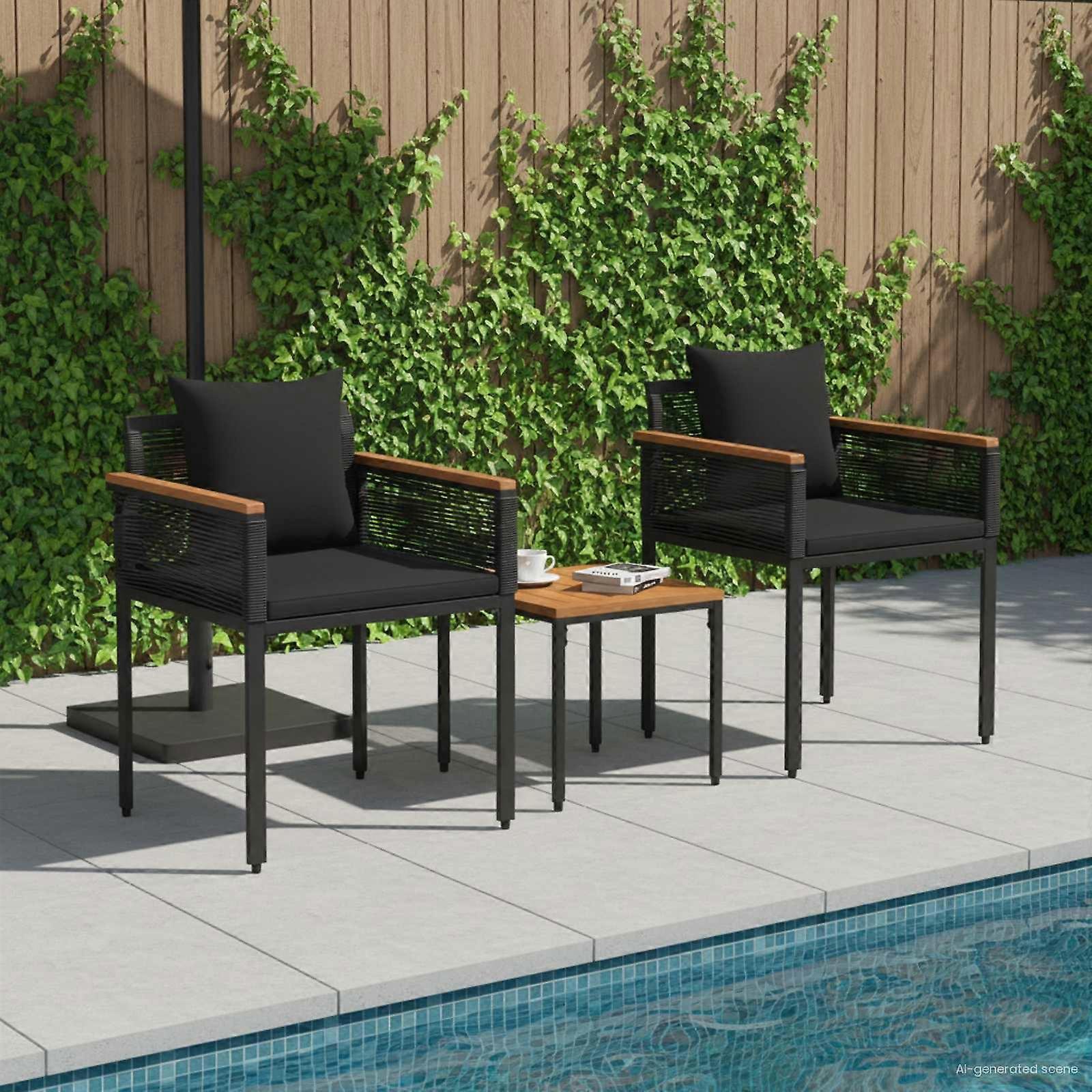 Gartenmöbel Set mit Kissen 3 pcs Schwarz PE-Rattan