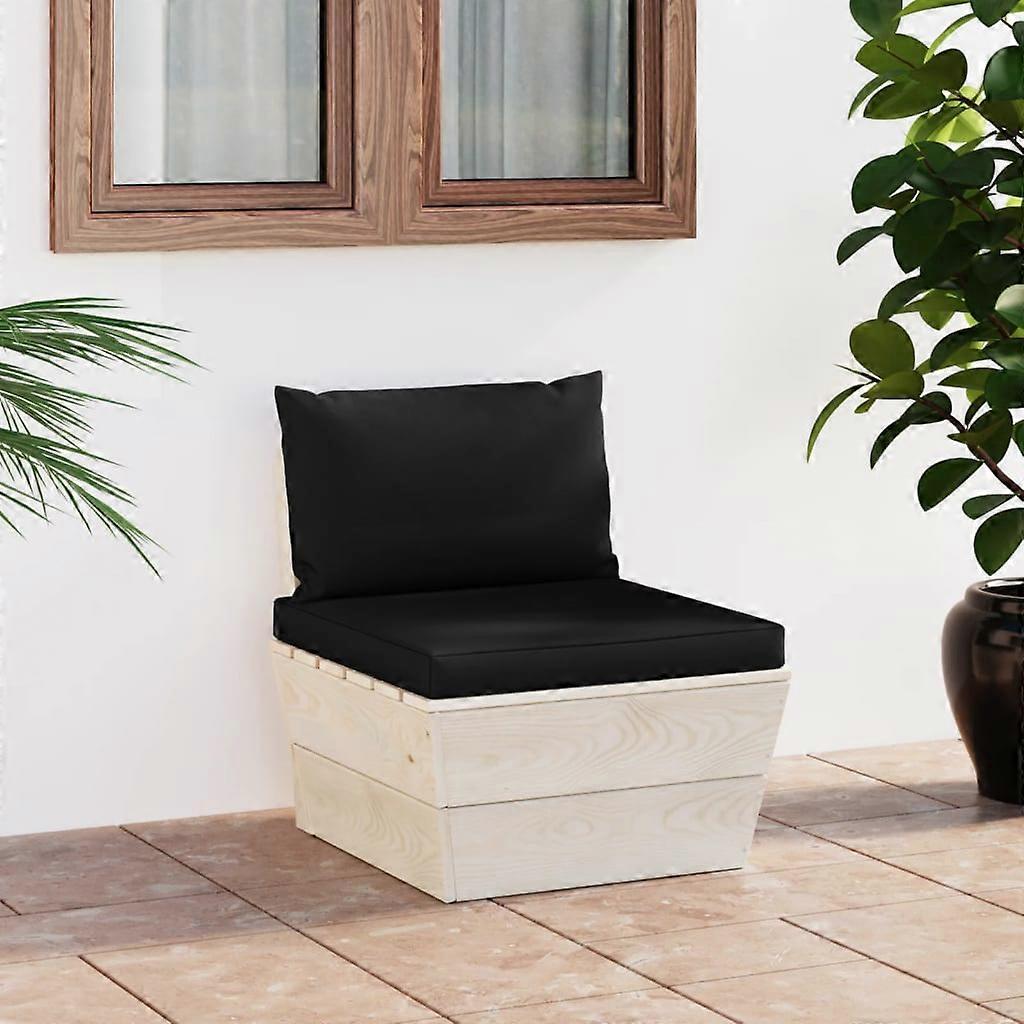 Dieses trendige Paletten-Sofa-Mittelteil mit Kissen ist eine ausgezeichnete Wahl, um sich zu entspannen und das Wetter zu genießen, ein Nickerchen zu machen oder mit Ihrer Familie oder Freunden zu plaudern. Mit einem zeitlosen Palettendesign verleiht dieses Holz-Sofa Ihrer Terrasse, Ihrem Garten oder Ihrem Wohnzimmer einen Hauch von rustikalem Charme. Das Gartensofa besteht aus imprägniertem Fichtenholz und ist somit langlebig und stabil. Dieses Sofa-Mittelteil hat eine solide Konstruktion und erfordert wenig Wartung. Dank der Kissen aus 100% Polyester und der dicken Polsterung sind die Palettenkissen weich und bieten höchsten Komfort. Es ist ideal für Familienfilmabende, Videospielen, uvm. Diese Terrassenmöbel sind modular aufgebaut und somit völlig flexibel und leicht zu umstellen, um sich jeder Umgebung anzupassen. Sie können es mit anderen modularen Segmenten kombinieren, um Ihre eigene Gartenlounge nach Ihrer Vorstellung zu erstellen