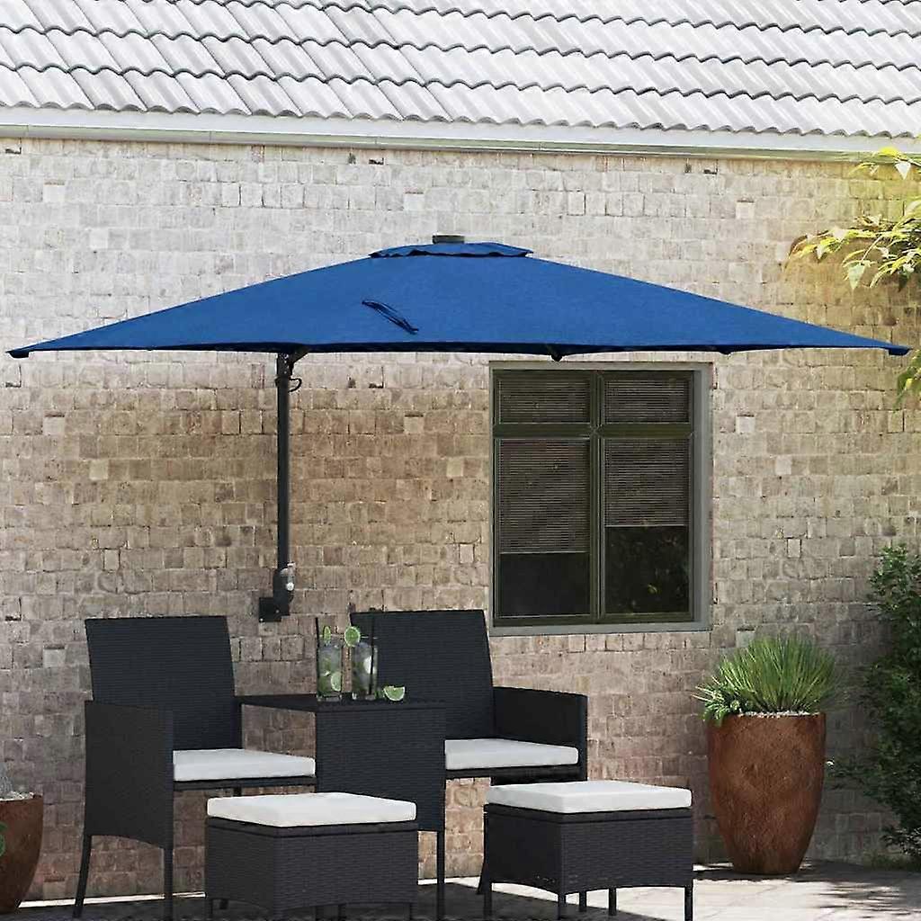 Farbe: AzurblauMaterial: Polyester und StahlGesamtabmessungen: 247,5 x 248,5 x 160 cm (L x B x H)KippbarLanglebigWandmontierbarHebemechanismus: ManuellStromquelle: SolarMontage erforderlich: JaLieferumfang:1 x Gartenparasol
