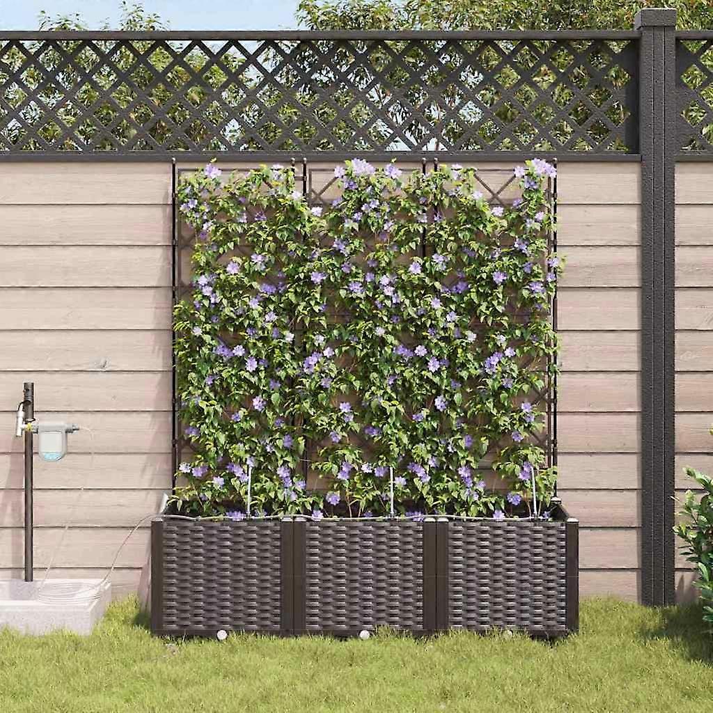 Farbe: BraunMaterial: StahlGesamtabmessungen: 120 x 40 x 142 cm (L x B x H)LanglebigNur für den AußenbereichMontage erforderlich: JaLieferumfang:3 x PflanzerBewässerungssystem