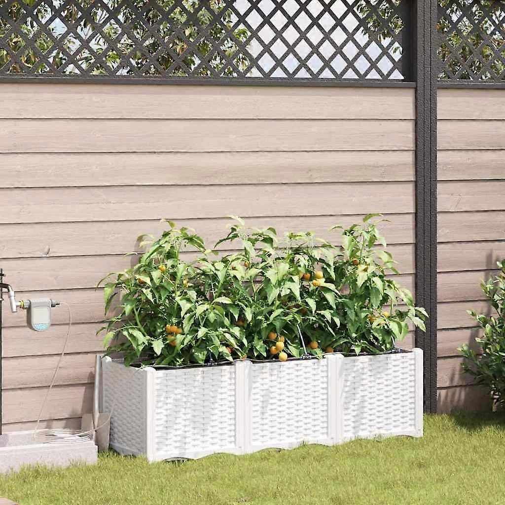 Farbe: WeißMaterial: StahlGesamtabmessungen: 120 x 40 x 37,5 cm (L x B x H)LanglebigNur für den AußenbereichMontage erforderlich: JaLieferumfang:3 x PflanzerBewässerungssystem