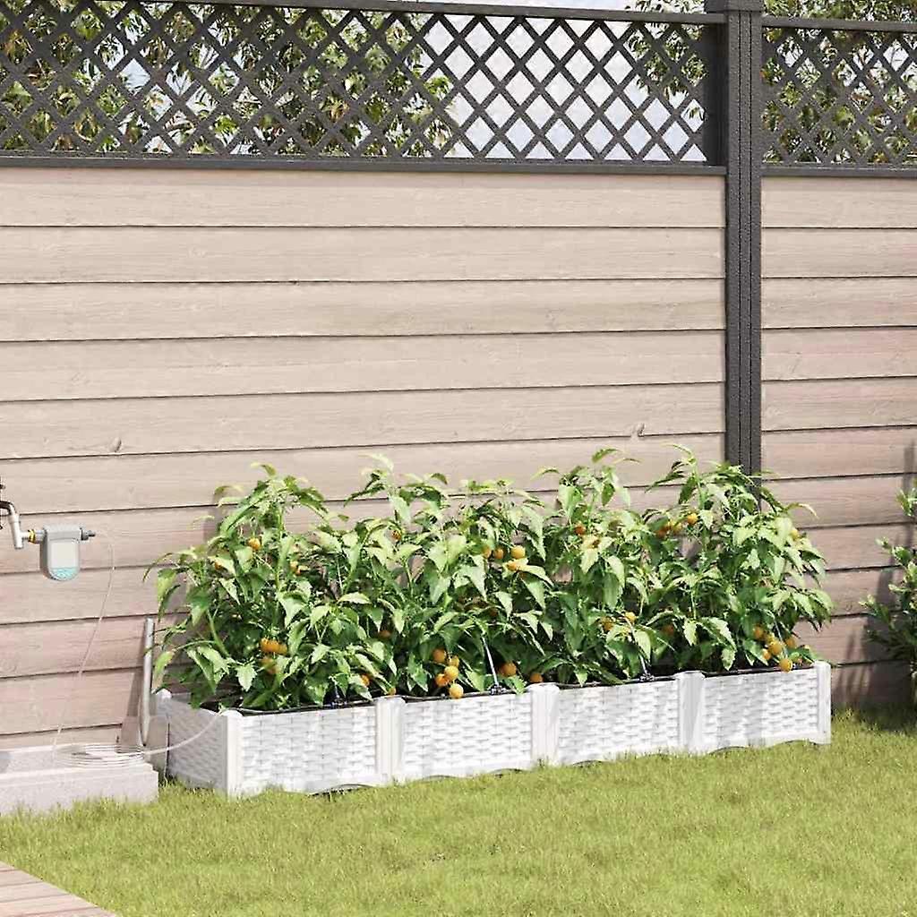Farbe: WeißMaterial: StahlGesamtabmessungen: 160 x 40 x 22 cm (L x B x H)LanglebigNur für den AußenbereichMontage erforderlich: JaLieferumfang:4 x PflanzerBewässerungssystem