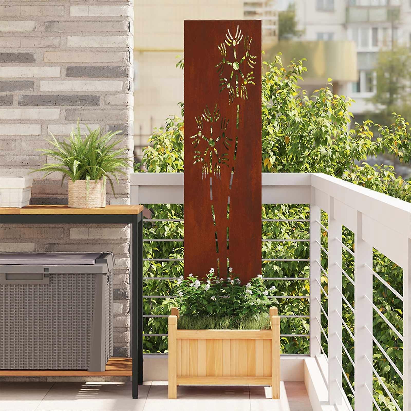 Farbe: RostigMaterial: WetterfeststahlOberfläche: MattGesamtabmessungen: 32 x 1,7 x 140 cm (L x B x H)Gewicht: 3,7 kgDekorative IntarsienLässt sich leicht in den Boden drückenNur für den AußenbereichLieferumfang:1 x SichtschutzMontage erforderlich: Ja