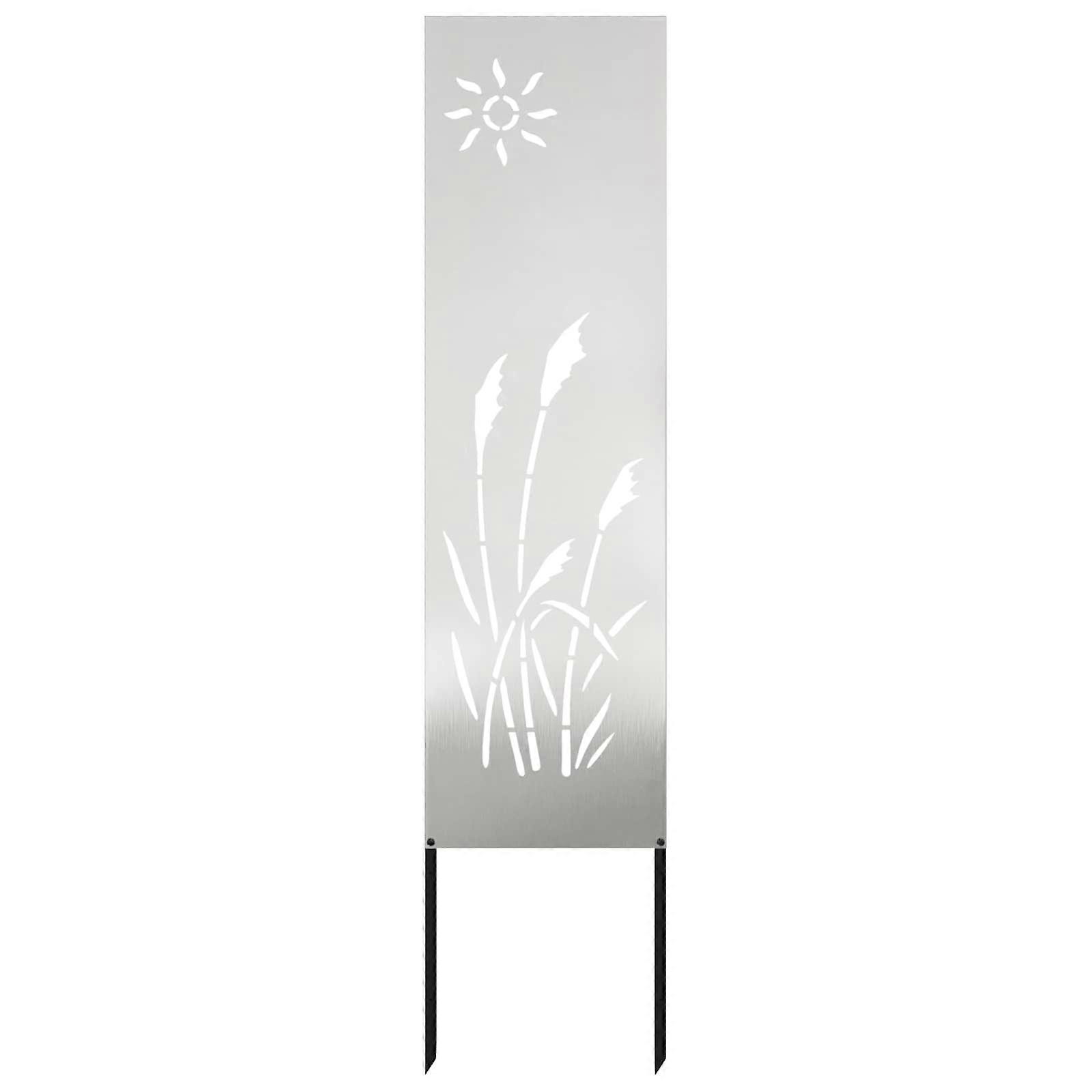 Farbe: SilberMaterial: EdelstahlOberfläche: MattGesamtabmessungen: 32 x 1,7 x 140 (L x B x H)Gewicht: 3,87 kgDekorative IntarsienInnen- / Außenbereich: Nur für den AußenbereichLieferumfang:1 x SichtschutzscreenMontage erforderlich: Ja