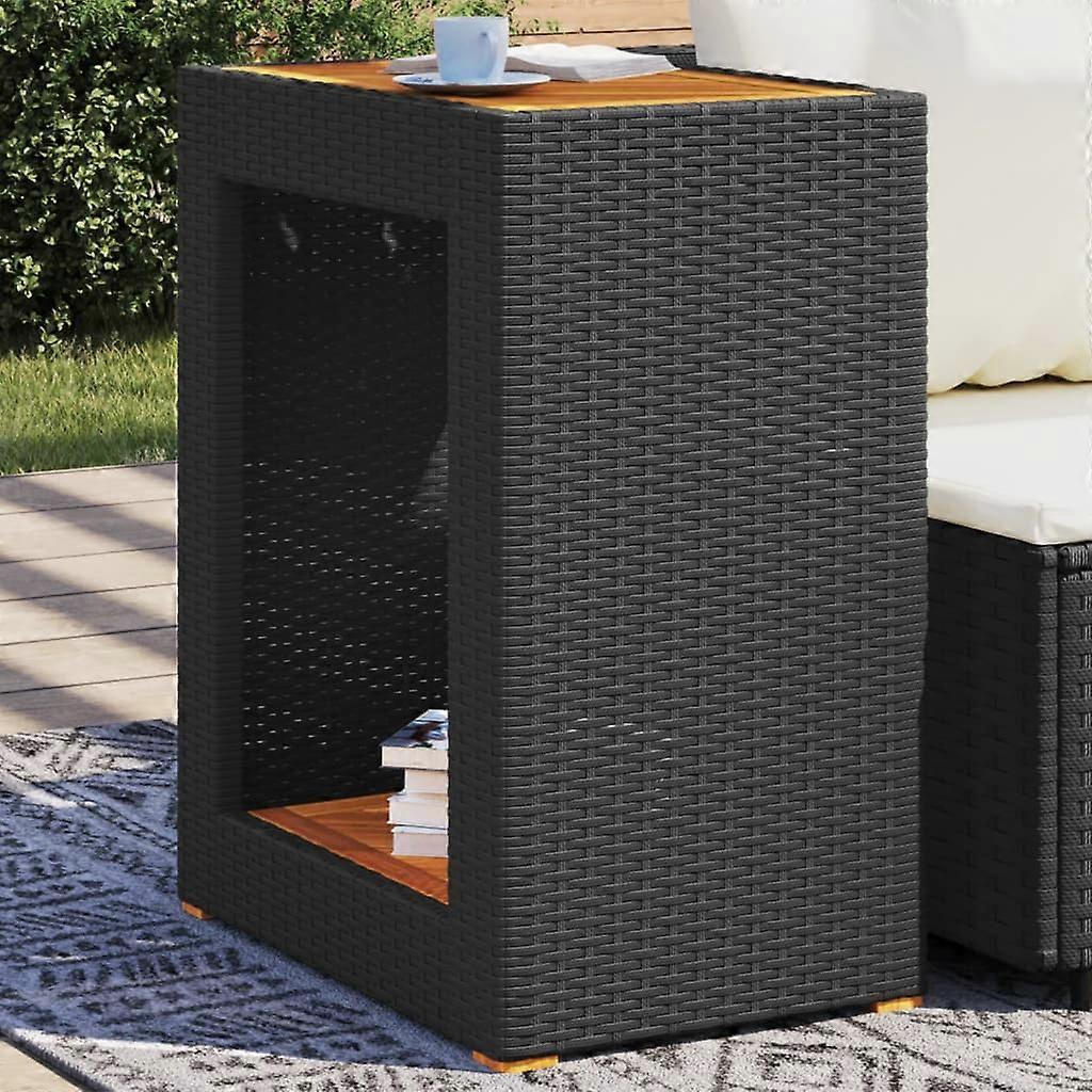 Garten-Beistelltisch mit Holzplatte Schwarz Poly Rattan