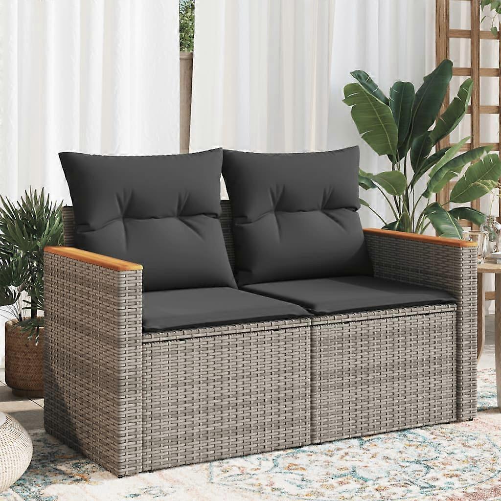 Gartensofa 2-Sitzer mit Kissen Grau Poly Rattan