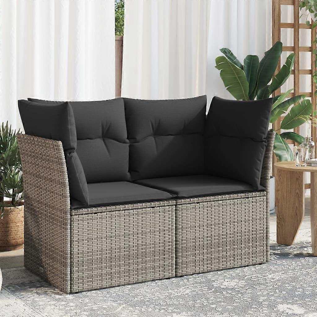 Gartensofa 2-Sitzer mit Kissen Grau Poly Rattan