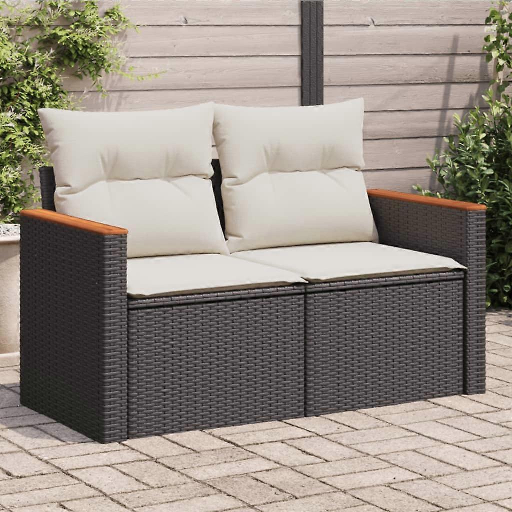 Gartensofa mit Kissen 2-Sitzer Schwarz Poly Rattan