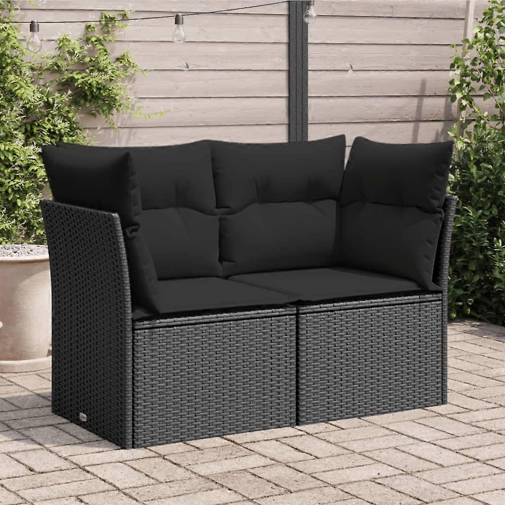 Gartensofa mit Kissen 2-Sitzer Schwarz Poly Rattan
