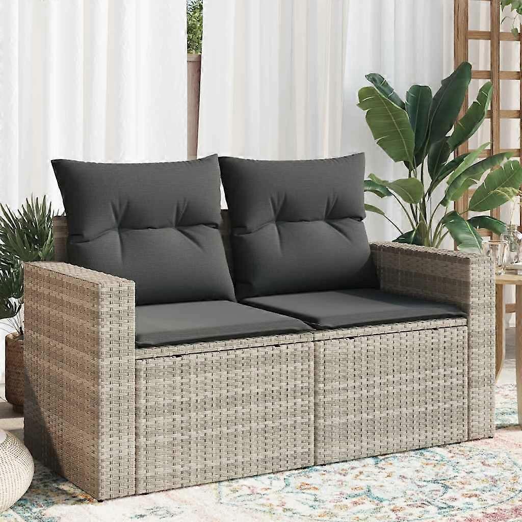 Gartensofa mit Kissen 2-Sitzer Hellgrau Poly Rattan