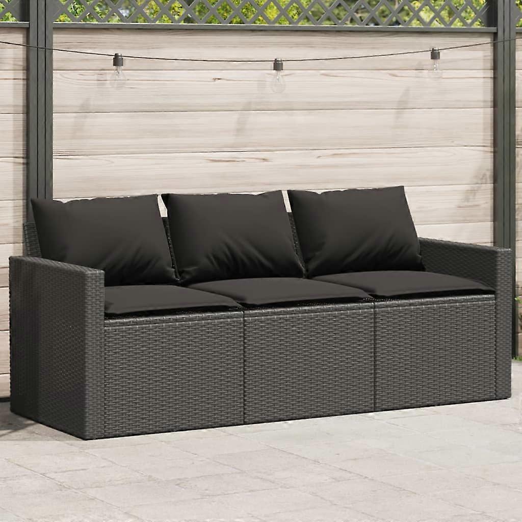 Gartensofa mit Kissen 3-Sitzer Schwarz Poly Rattan