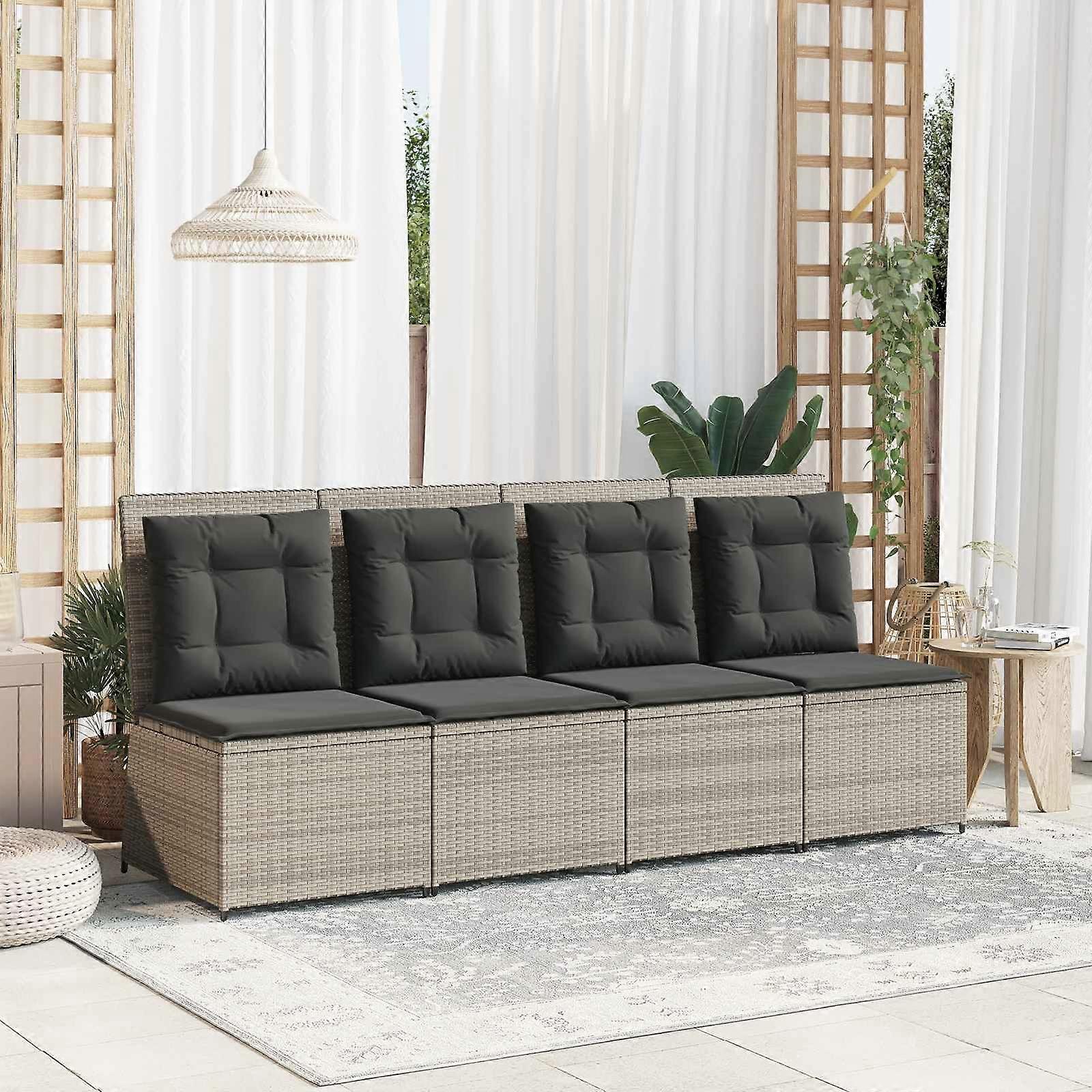 Garten-Sofa mit Kissen Hellgrau Poly-Rattan