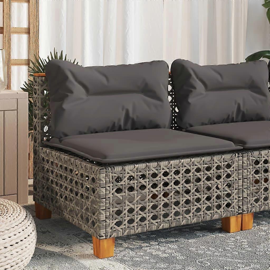 Gartensofa ohne Armlehnen mit Kissen Grau Poly Rattan