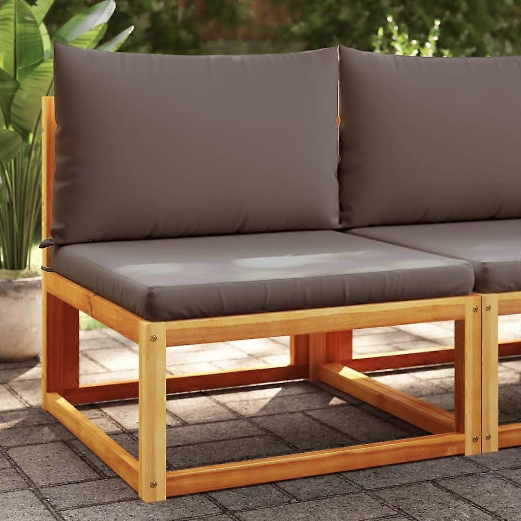 Dieses Gartensofa aus Holz mit geflochtener Rattan-Rückenlehne und Kissen ist eine tolle Ergänzung für Ihren Garten, Ihre Terrasse oder Ihren Innenhof, um mit Familie und Freunden zu plaudern oder einfach das Wetter zu genießen. Stilvolle geflochtene Rückenlehne: Das Gartensofa verfügt über eine aufwendig gearbeitete Rattan-Rückenlehne, die jedem Außenbereich eine elegante Note verleiht.Robuster und stabiler Rahmen: Massives Akazienholz ist für seine Robustheit und Langlebigkeit bekannt. Seine vielfältigen Farben und die einzigartige Maserung verleihen ihm ein attraktives Aussehen. Dank seiner guten Stabilität und Witterungsbeständigkeit eignet es sich ideal für die Herstellung von Möbeln für drinnen und draußen.Bequemes Sitzerlebnis: Diese Gartenmöbel mit dick gepolsterten Kissen bieten ein bequemes Sitzerlebnis.Abnehmbarer und waschbarer Bezug: Dieses Sitzkissen verfügt über einen abnehmbaren Bezug für einfaches Waschen und Pflegen.Modulares Design: Diese Gartenmöbel sind modular aufgebaut und daher völlig flexibel und leicht zu bewegen, sodass Sie eine individuelle Gartenmöbelanordnung erstellen können. Gut zu wissen:Damit Ihre Gartenmöbel schön bleiben, empfehlen wir Ihnen, sie mit einer wasserdichten Abdeckung zu schützen. Sofa ohne Armlehnen:Mit Rattan-RückenlehneFarbe des PE-Rattans: GrauMaterial: Massives Akazienholz mit Öl-Finish, PE-RattanMaße: 65 x 65 x 65 cm (B x T x H)Sitzgröße: 65 x 61,5 cm (B x T)Sitzhöhe vom Boden: 29 cmMaximale Tragkraft (pro Sitz): 110 kgZusammenbau erforderlich: JaKissen:Farbe: GrauBezugsmaterial: Stoff (100 % Polyester)Füllmaterial Sitzkissen: SchaumstoffFüllmaterial Rückenkissen: PolyfaserMaße Sitzkissen: 65 x 61,5 x 6 cm (B x T x T)Maße des Rückenkissens: 65 x 41 x 15 cm (L x B x T)Lieferumfang:1 x Sofa ohne Armlehnen1 x Rückenkissen1 x Sitzkissen mit abnehmbarem und waschbarem Bezug