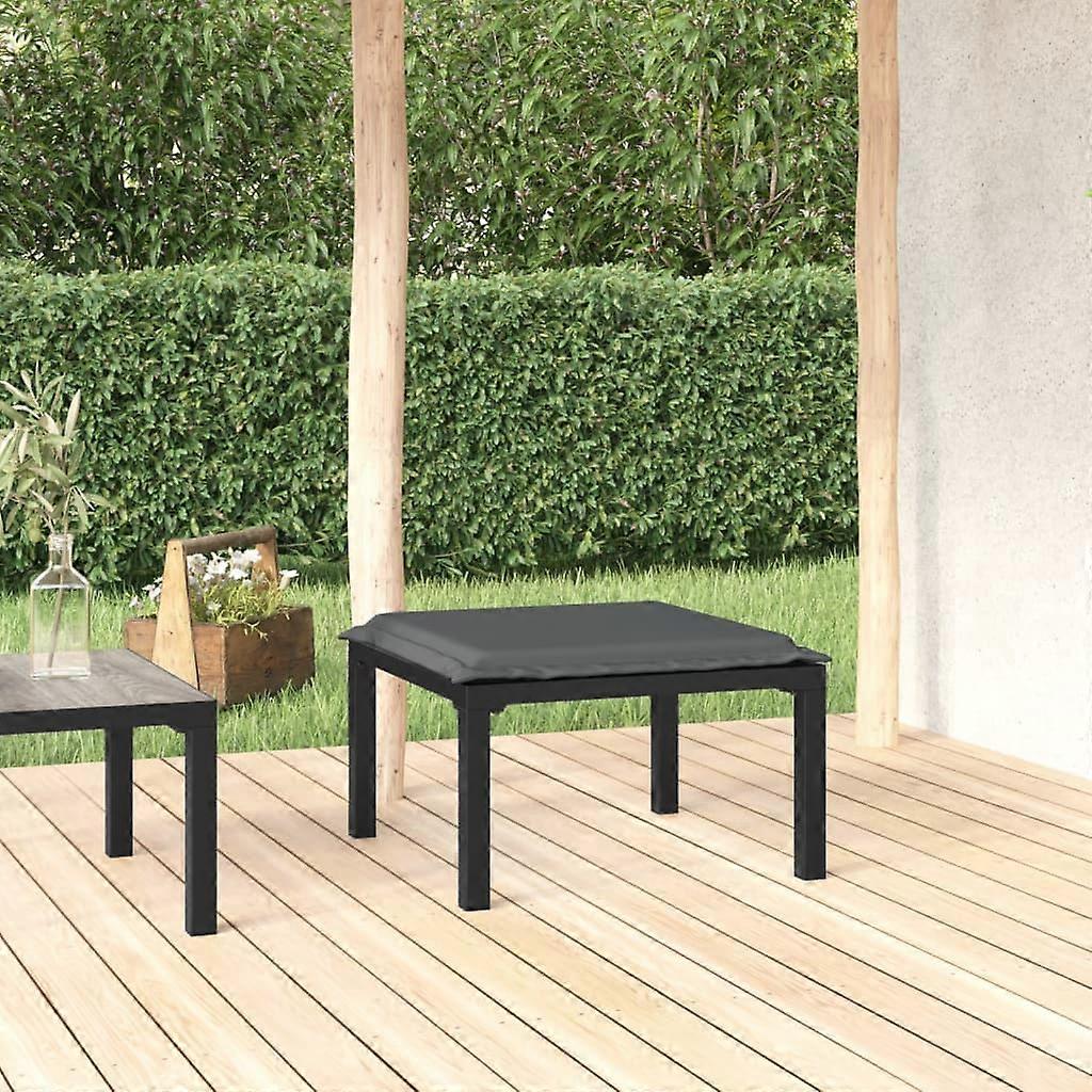 Gartenhocker mit Kissen Schwarz und Grau Poly Rattan