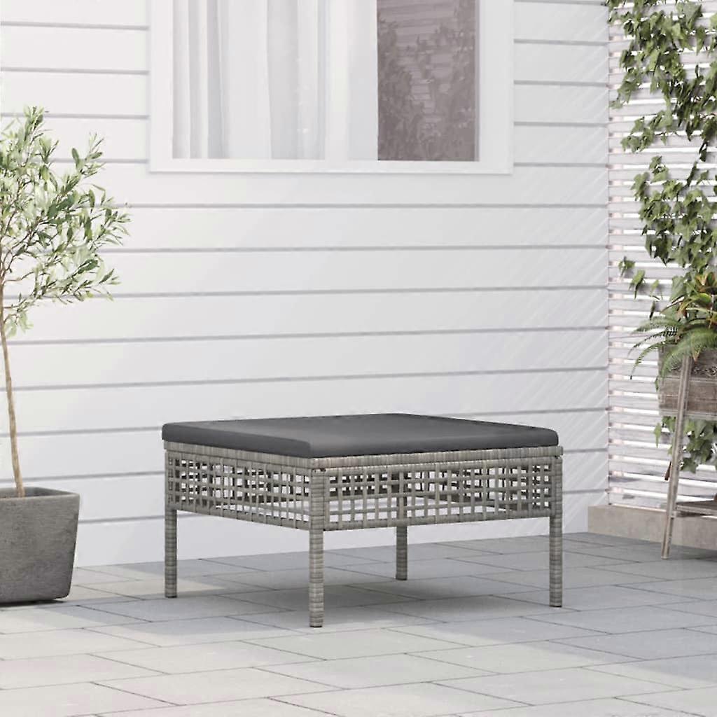 Gartenhocker mit Kissen Grau Poly Rattan