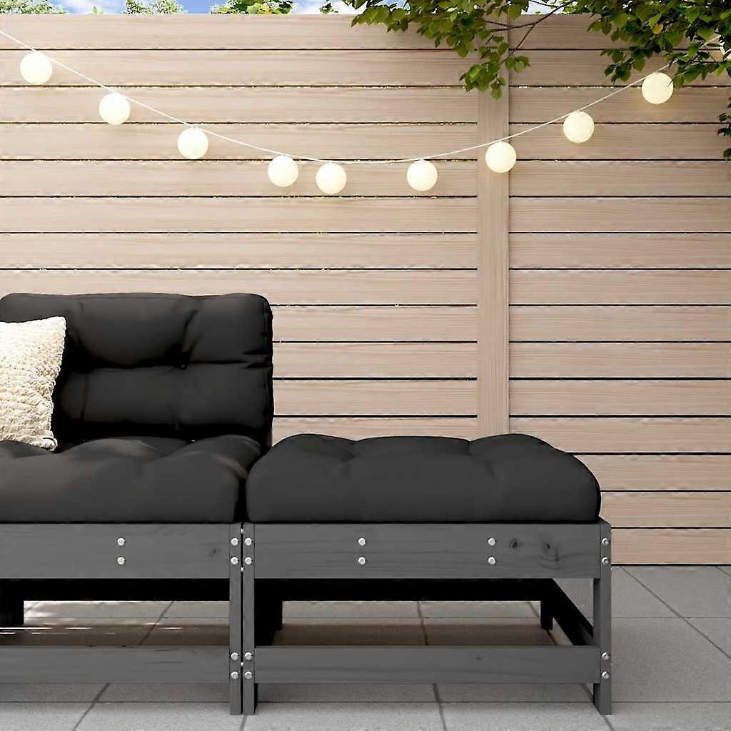 Gartenhocker mit Kissen Grau Massivholz Kiefer
