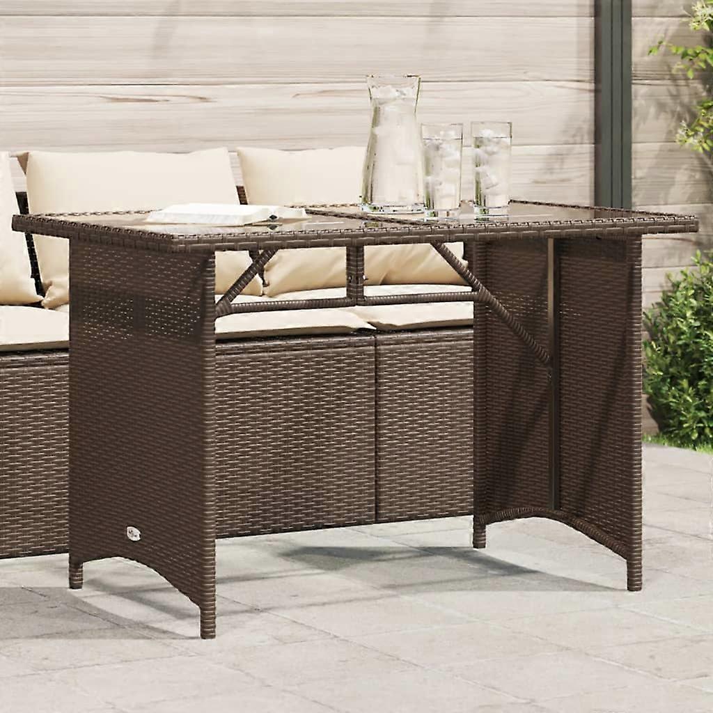Gartentisch mit Glasplatte Braun 110x68x70 cm Poly Rattan
