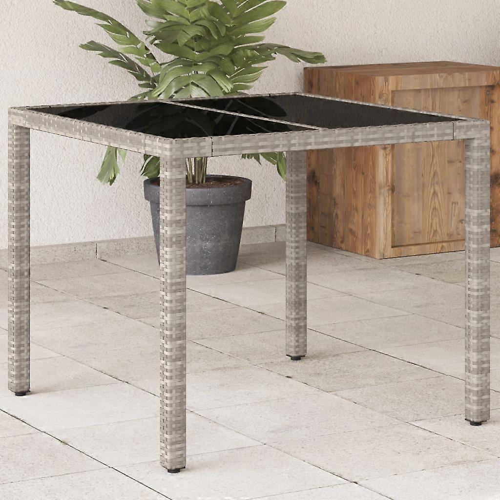 Gartentisch mit Glasplatte Hellgrau 90x90x75 cm Poly Rattan