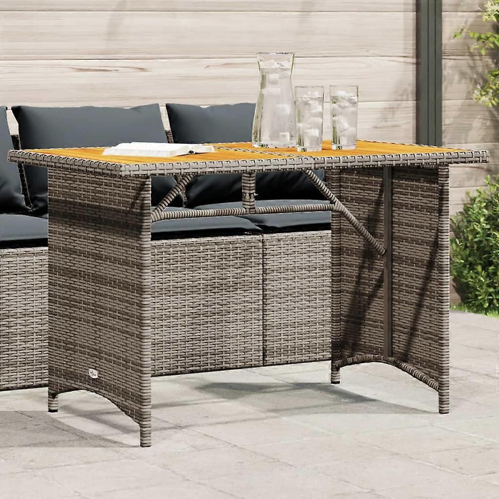 Gartentisch mit Holzplatte Grau 110x68x70 cm Poly Rattan