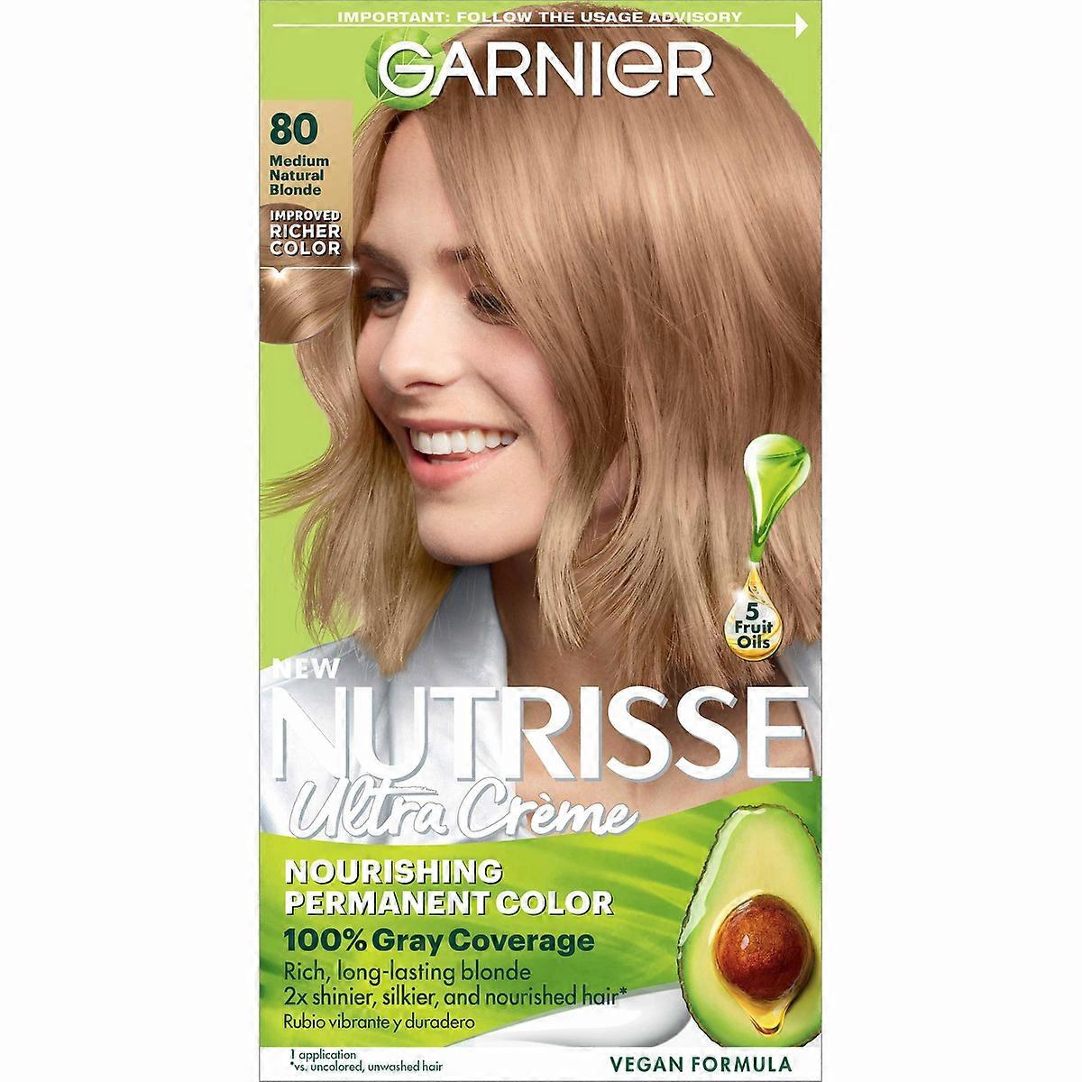 Garnier Nutrisse Nourishing Permanent Hair Color Creme, 80 Medium Natural Blonde