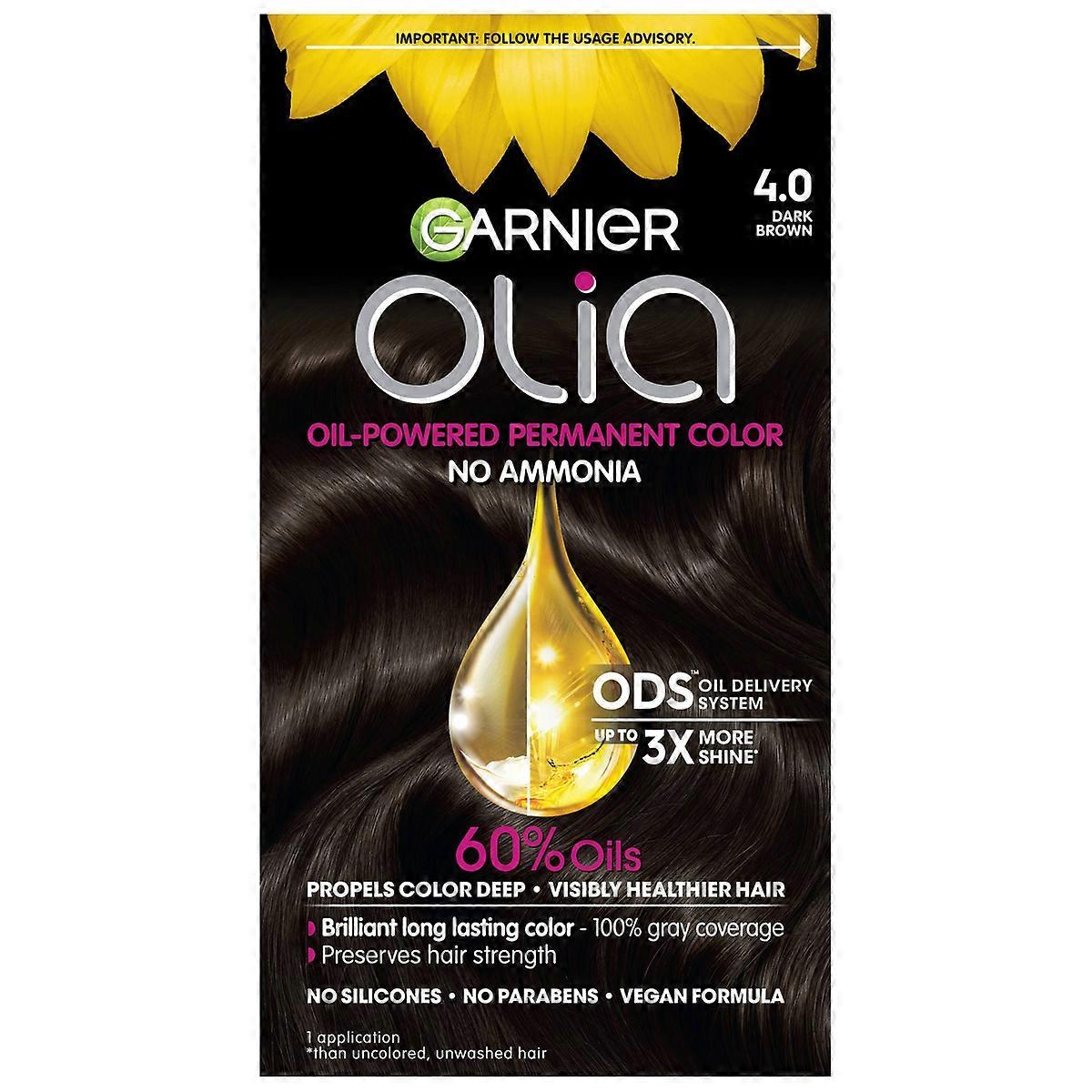 Garnier Olia Oil Powered Ammonia Free Permanent Hair Color, 4.0 Dark Brown - 6 Fl Oz