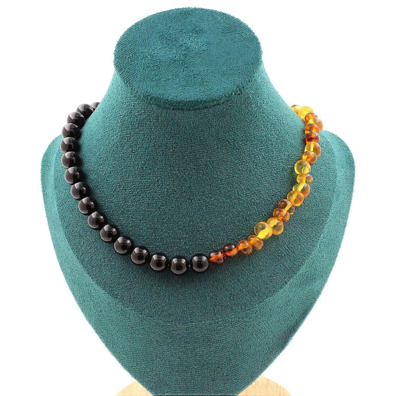 Genuine Baltic Sea Amber pearl necklace + 8 mm black agate Stainless steel chain