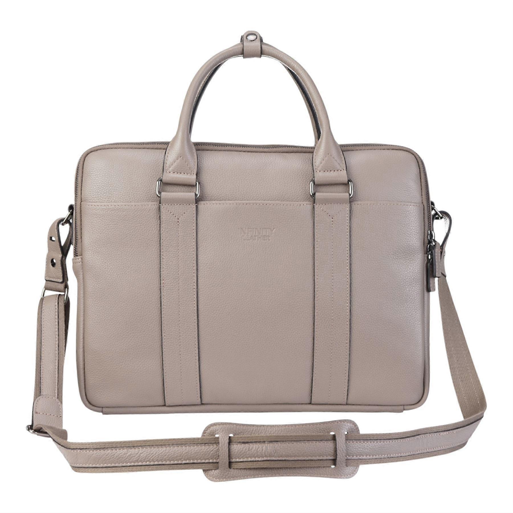Genuine Leather Grey Laptop Bag Business Briefcase Office Work Travel Case Mens
