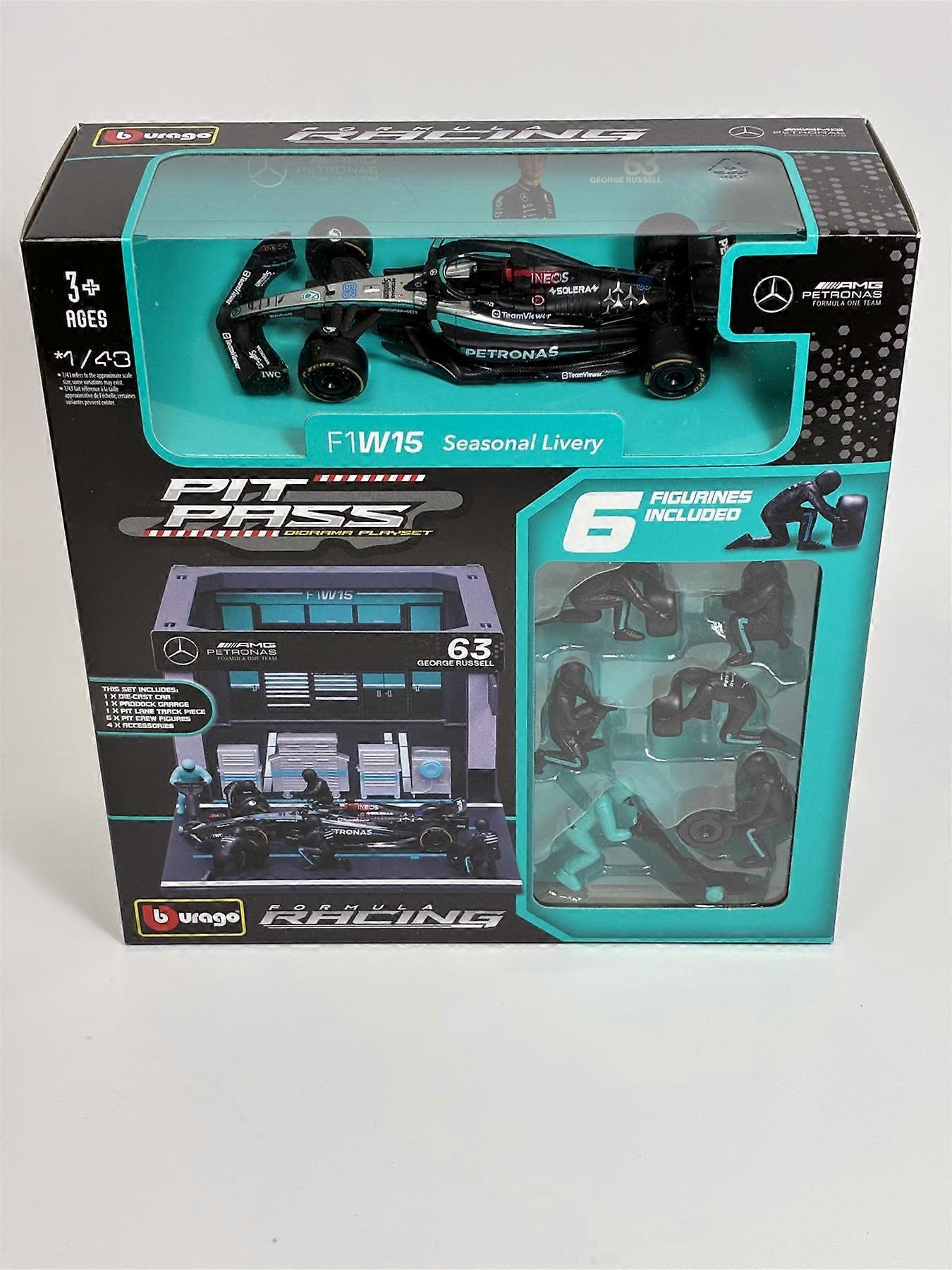 George Russell #63 Mercedes Pit Pass Diorama with F1W15 1:43 Bburago 38452R
